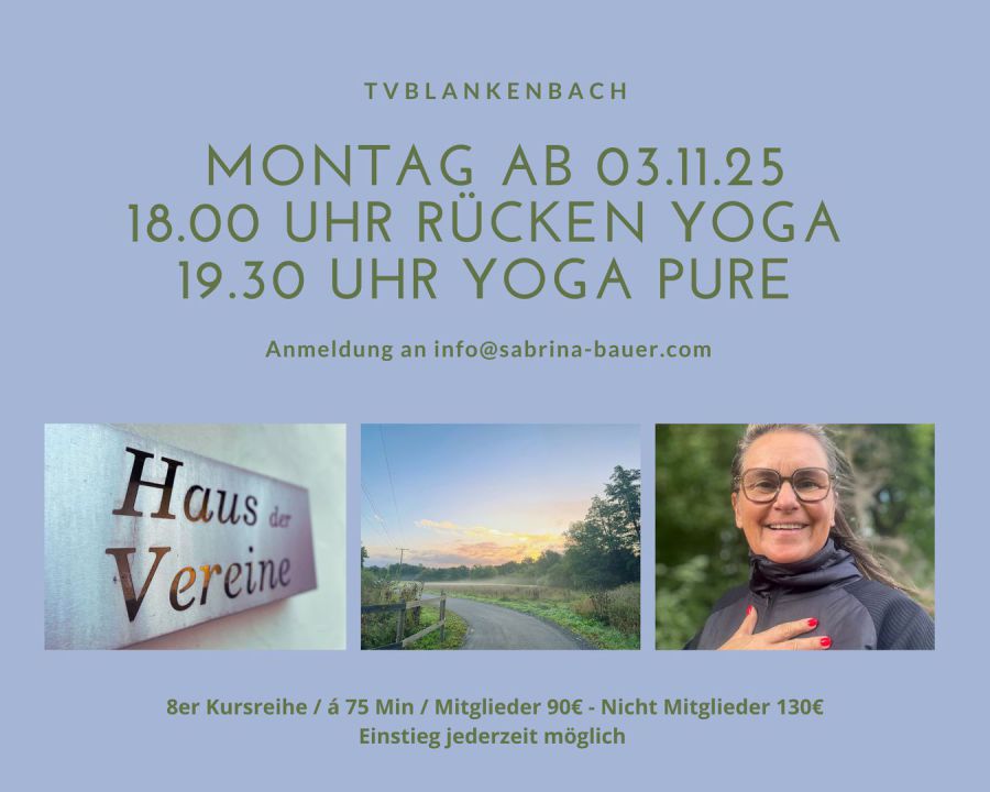 • 18:00 Uhr – Rücken-Yoga (75 Minuten)